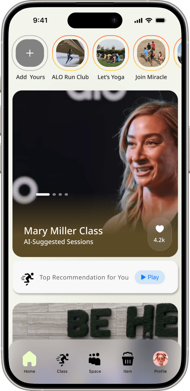 Whether you’re wired after a double espresso or winding down, the AI curates classes, challenges, and brand spaces matched to your moment.