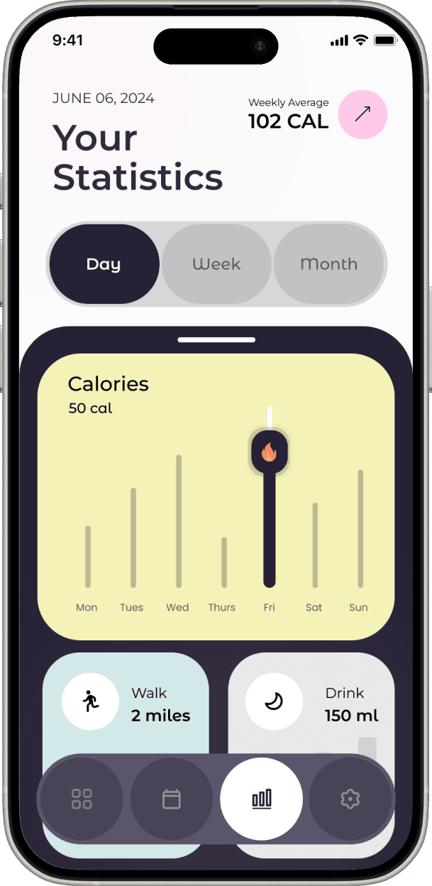 Allow real-time biometric syncing or manual check-in to personalize your day’s wellness content. No scrolling, no second guessing — just sync and start.
