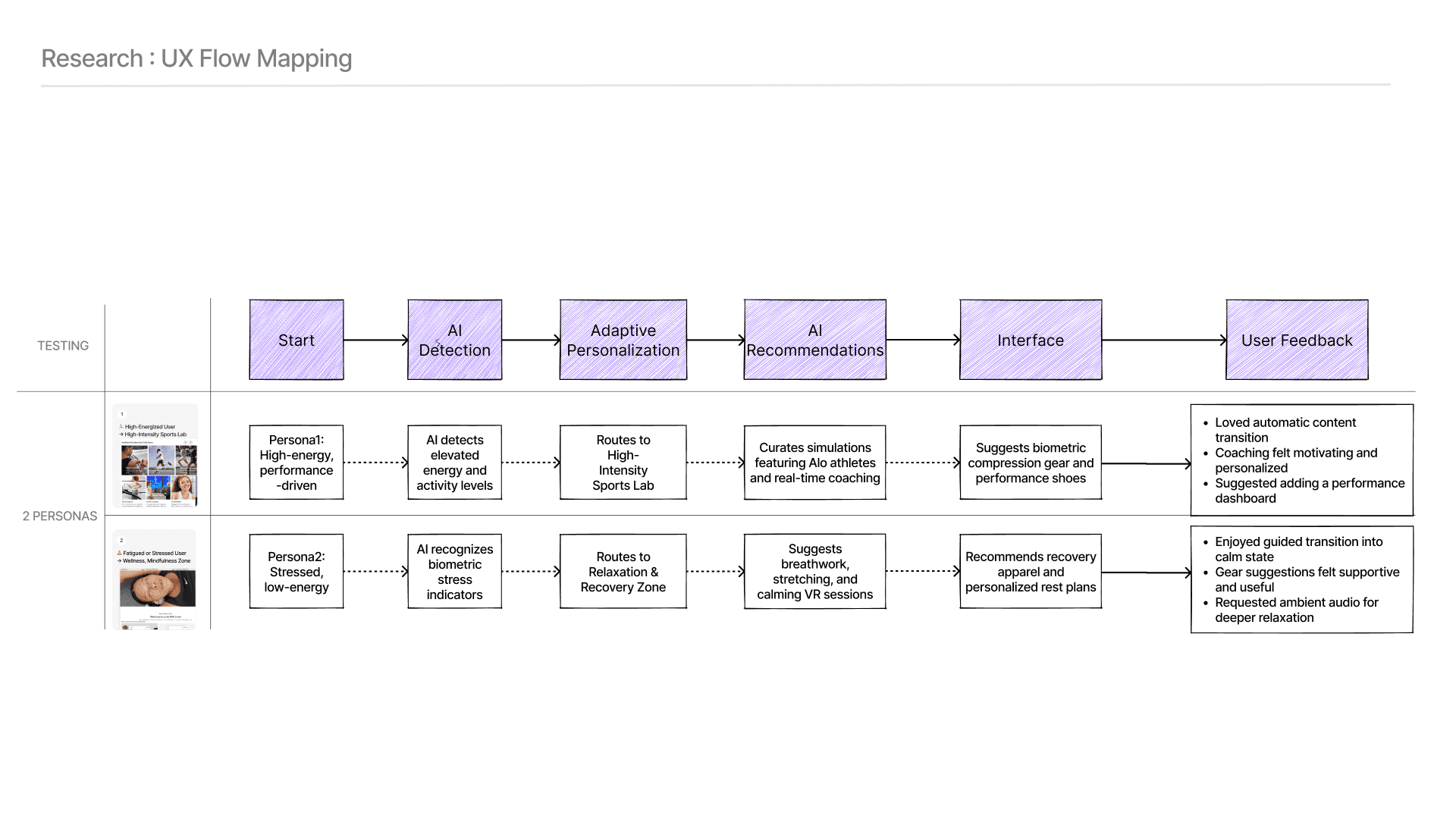 Inspired by Alo’s evolving identity, this project explores how a brand might extend beyond static content and commerce to deliver personalized, real-time experiences grounded in users’ energy, rhythm, and readiness.