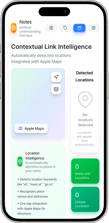 When you write location-related phrases, the system intelligently identifies places and attaches Apple Maps links for easy navigation — no extra steps needed.