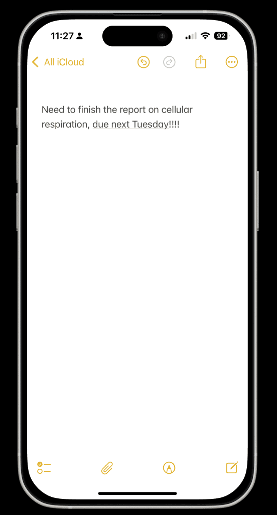 “My notes are full of random words from different parts of my life. Grocery, work, dinner plans...all jumbled.”